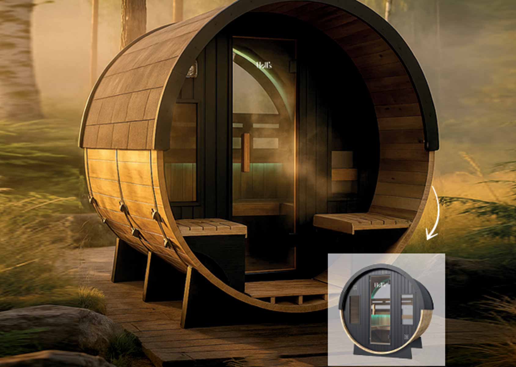 A Beautifully designed outdoor sauna.